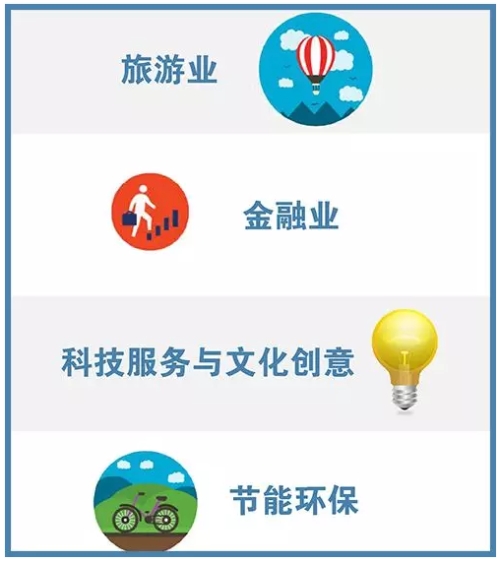 “4+4”现代产业格局中的第二个“4”,就是积极培育处于成长期的旅游业、金融业、科技服务与文化创意、节能环保四大潜力产业。