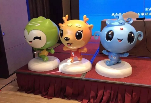 大会最终确定的吉祥物以“山水”、“鹿”、“泉”等元素为创意,分别取名为“游游”、“鹿鹿”和“泉泉”,突出了鹿泉的山水文化,进一步展现“绿水青山·多彩鹿泉”的大会主题。