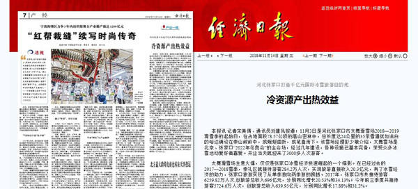 同时,冰雪装备产业园区应运而生。张家口规划了高新区冰雪运动装备产业园和宣化冰雪产业园两大平台。前者一期工程占地1160亩,总投资50亿元,目前已吸引全球知名滑雪鞋类品牌Alpina、安全客运索道生产及服务商BMF、知名滑雪服饰品牌TENSON、国际滑雪及户外运动品牌BLOOM、索道及雪场魔毯世界级制造商MND等多个明星冰雪企业入驻园区。项目达产后,预计能完成主营业务收入100亿元、实现税收10亿元以上。