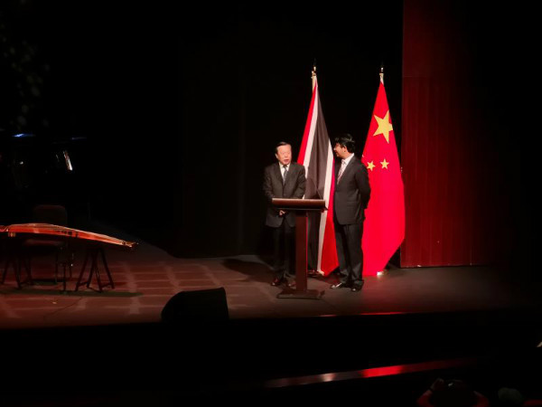 演出开始前,中国驻特多大使馆张雷参赞代表宋昱旻大使、特多文化部常务秘书代表多利部长分别就纪念中特建交45周年专场演出活动致贺词。