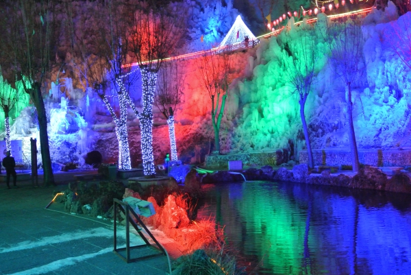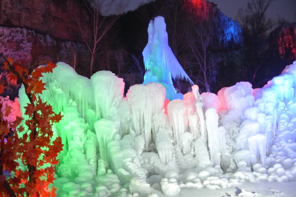 沕沕水的冬天,银装素裹,冰瀑犹如利刃出鞘,直指云天。星罗棋布的冰柱、冰笋、冰凌、冰花,形态各异,有的酷似大象汲水,憨态可掬;有的就像小蘑菇和灌木丛,相映成趣;有的薄如蝉翼,晶莹剔透……夜幕降临,在五彩灯光的照射下,冰瀑更添神秘色彩,有的像翡翠玉石;有的像蓝色精灵;有的像充满魔法的水晶球,一切都变得生动起来。在这里你可以看到充满神秘色彩的圣仙桥、祥云绕顶的险溢河畔、高达百米的时光隧道、五彩斑斓的冰上烟火……置身这样一个多彩的童话世界,让人流连忘返。