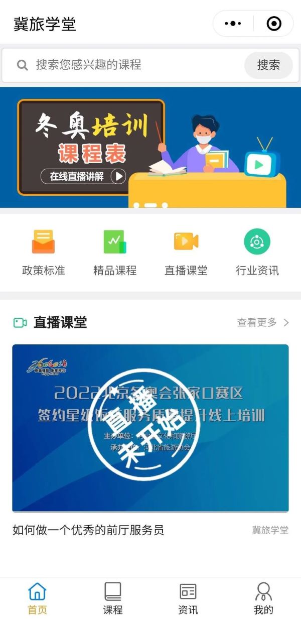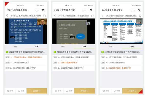 为全力推进2022北京冬奥会张家口赛区住宿服务保障工作,加快提升签约星级饭店服务质量,全面提升签约星级饭店从业人员业务素质与服务技能,7月14日,2022北京冬奥会张家口赛区签约星级饭店服务质量提升线上培训在“冀旅学堂”微信小程序正式启动,截至7月20日,已推出3节在线直播课。