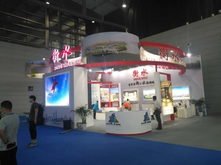 衡水展位按照“展示、展销”的原则,分为城市及其文化旅游特色形象展示、旅游企业参展、互动体验、衡水运河文化、旅游特色商品展销等功能区域。展位主入口设立高清大屏以播放宣传片,底部城市剪影的装饰美观大方;立面灯箱呈统一基调,可独立展示各个板块的图文内容,同时配备桌柜展陈相关实物产品。衡水市文化广电和旅游局共组织了闾里古镇孙敬学堂、候店孙占彪毛笔厂、冀州田园棉被服公司、恒盛号豆豉酱等6家企业,康庄国旅、青联国旅两家旅行社以及衡水美食协会参加此次博览会。展会期间,展位前人头攒动,人流络绎不绝。有人被国家级非物质文化遗产——侯店毛笔所吸引,以水代墨写下几个大字,然后买下几支心仪的毛笔送给老人和孩子;有人详细询问了礼孝文化研学基地——闾里古镇孙敬学堂教学内容和模式,决定抽时间实地考察一番;还有人对恒盛号豆豉酱的味道赞不绝口,口齿留香间买一箱回去和家人一起分享……