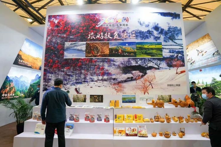 河北省文化和旅游厅高度重视,组织全省各地文旅部门参展,特装展台采用了赵州桥等河北特有的文旅元素,并通过现场灯箱图片、纸质宣传资料等,重点展示了我省冬奥冰雪、历史文化、海滨休闲等文旅资源和产品,让游客如同身临其境。河北省文化和旅游厅设立“旅游扶贫展区”,展示了我省多种助力脱贫的文旅商品。