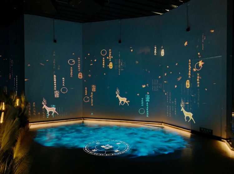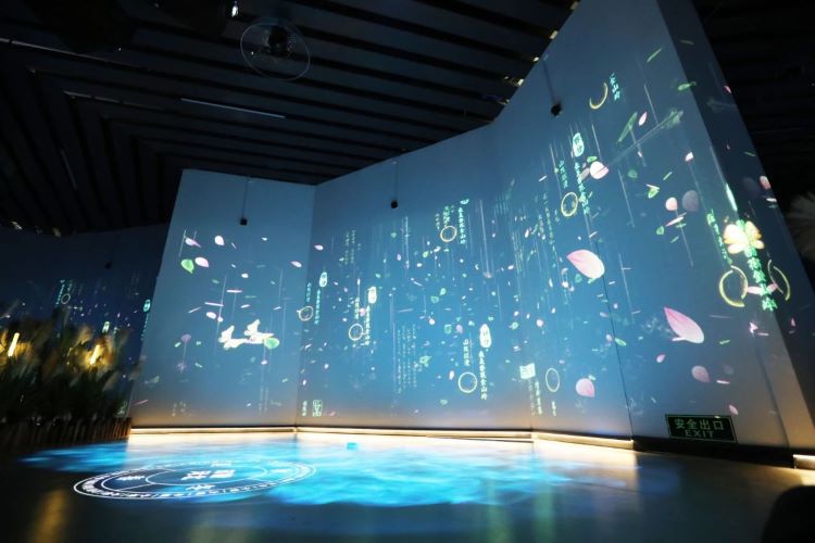 作为最有科技感的数字沉浸展区,五彩河北数字交互长卷首创国漫“山海经”风格,将河北省丰富的旅游IP与数字艺术进行阵列化的融合,打造出生动鲜明的河北符号。整个长卷播放时长为6分钟,开篇苍茫渤海、日出东方为始,海的宽广、山的险峻、关的雄伟在这里浑然一体,在一天的时间线索内形成了自然风光与人文历史合而为一的壮丽画面,从而引出之后曲水流觞、神奇幻彩的长卷故事。长卷中设有三处交互点,金山岭长城雪景可跟随人影方向实时移动,姗姗走过白洋淀荷花盛开,大运河华灯初上,扫描二维码,可以通过手机发送祝福语,并下载长卷动态壁纸。印象河北沉浸体验空间则将汉字艺术作为河北旅游意象的载体,在四季更迭、寒来暑往的数字场景中,提供多人同时交互体验。通过触碰墙面的气泡触发动画,可以体会河北景区与二十四节气结合的诗意之美。在由沉浸式场景所组成的移步换景的空间内,让公众体验一次欢快的河北旅游穿越之旅。