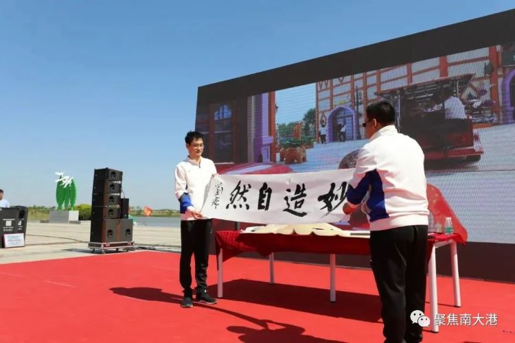 启动仪式上,大家共同观看了《南大港文化旅游休闲季宣传片》,并聆听了关于南大港湿地景区、滨海恒大文化旅游城、直播培训基地、四库全书项目的推介。市局和园区领导分别向国家AAAA级旅游景区南大港湿地、国家AAA级旅游景区滨海恒大文化旅游城颁发证书,向省级乡村旅游重点村一分区马营村授牌。沧州市文化广电和旅游局党组副书记、二级调研员聂建勋在仪式上致辞,对南大港旅游景区改造提升、全域旅游发展给予充分肯定和高度评价。之后,沧州渤海新区党工委委员、南大港产业园区党委书记、管委会主任刘国林同参加仪式的领导及嘉宾共同开启启动球,标志着南大港产业园区2021年“文化旅游休闲季”正式启动。启动仪式现场锣鼓喧天,热闹非凡,大鼓秧歌、文艺展演、书法创作等丰富多彩的文旅表演亮点纷呈,让人耳目一新,赢得现场观众的阵阵掌声。
