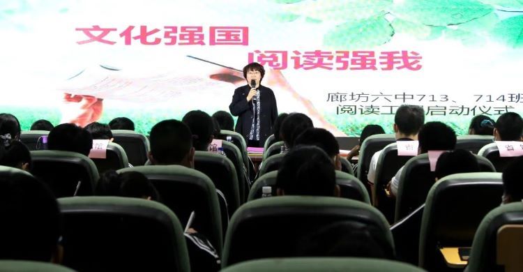 随后,“文化强国,读书强我”活动启动仪式在市图书馆五楼报告厅举行。甘馆长代表廊坊市图书馆从人类史角度、教育角度、阅读角度向同学们展示了图书馆的样子,并对同学们提出了殷切希望,希望他们常来图书馆,学会使用图书馆,养成良好阅读习惯。
