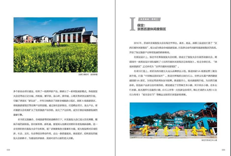 2016年,首届河北省旅发大会在保定市举办,涞水、易县、涞源三县成功打造了“京西百渡休闲度假区”,使之成为推动全域旅游发展、打造多业态布局新型旅游度假区的典范,开创了保定旅游产业转型发展的崭新格局。该度假区由三县联动整体打造,新上一大批旅游项目,涵盖乡村游、山地游、农业游、工业游、购物游、文化游、康养游、研学游等多种新业态,不仅让旅游内容更丰富,也释放了旅游对其他产业的带动作用。