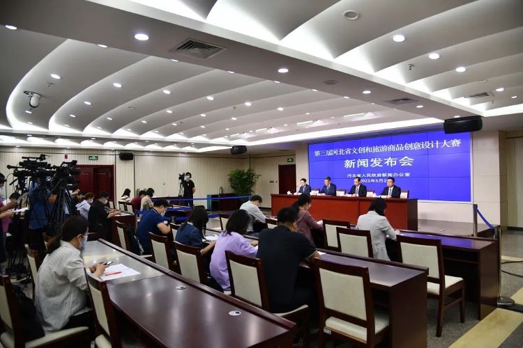 5月28日,第三届河北省文创和旅游商品创意设计大赛(以下简称“大赛”)新闻发布会在省政府新闻发布厅召开,大赛征集正式拉开帷幕。本届大赛由河北省文化和旅游厅、河北省工业和信息化厅主办,河北广电网络集团传媒科技有限公司承办,各市(含定州、辛集)文化广电和旅游行政部门协办。同时,还邀请到了河北轻工业协会、河北工艺美术学会等作为支持单位;新华网、河北日报、河北广播电视台等作为支持媒体。河北省文化和旅游厅二级巡视员杨军出席发布会并介绍相关情况,河北省文化和旅游厅政策法规处处长李英、河北省工业和信息化厅科技处三级调研员郭瑞出席发布会并答记者问,河北省委宣传部(省政府新闻办)新闻发布处二级调研员袁金辉主持发布会。
