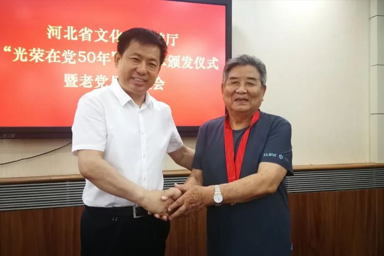 最后,赵学锋代表厅党组对获得“光荣在党50年”纪念章的全体老党员致以崇高的敬意。他指出,一是希望各位老党员继续关心支持我省文化和旅游业发展,为我省文化和旅游“十四五”开好局、起好步献计献策,为实现我省文化和旅游高质量发展继续发挥余热、贡献力量。二是进一步深化党史学习教育。广大离退休老干部是党的宣传文化工作的重要组成部分,担负着“举旗帜、聚民心、育新人、兴文化、展形象”的重大历史使命,老同志们要充分发挥自身的政治优势、思想优势和经验优势,继续讲好河北故事、讲好中国故事、讲好中国共产党故事、讲好新时代中国特色社会主义故事。三是要保持身心健康,家庭和睦幸福。希望老同志们积极传播中华民族传统美德,传递和践行尊老爱幼、男女平等、夫妻和睦、勤俭持家、邻里团结的观念,在为家庭谋幸福、为他人送温暖、为社会作贡献的过程中提高精神境界、培育文明风尚。