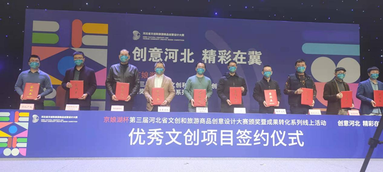 21日,通过大赛平台孵化,达成创意成果转化的“河北博物院数字文创NFT藏品研发销售”等10个合作项目还进行了线上集中签约活动,现场签约金额达1.185亿元。北京动漫游戏产业协会、杭州蚂蚁酷爱科技有限公司等国内外签约代表均表达了对签约项目和河北文创产业发展的信心。