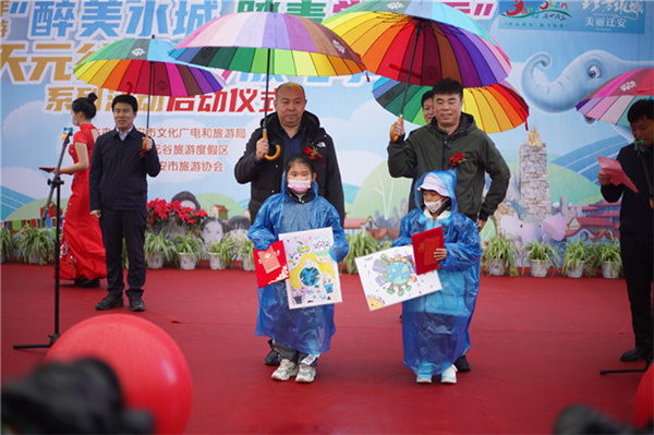 出席活动的领导有唐山市委宣传部副部长、文化广电和旅游局党组书记刘金柱,河北省演艺集团艺委会主任兼省话剧院院长黄平安,河北省杂技团副团长傅志强,迁安市政府副市长王友顺,滦河文化产业区党工委书记、管委会主任任顺,天元谷旅游度假区董事长阳家军。仪式由迁安市文化广电和旅游局党组书记、局长何爱军主持,摄影家团队、旅游志愿者、“七彩放飞季”系列活动获奖选手和游客朋友百余人到场见证。唐山市委宣传部副部长、文化广电和旅游局党组书记刘金柱宣布活动启动,并为 “七彩放飞季”系列活动之“童心绘低碳”儿童作品大赛获奖选手进行颁奖。