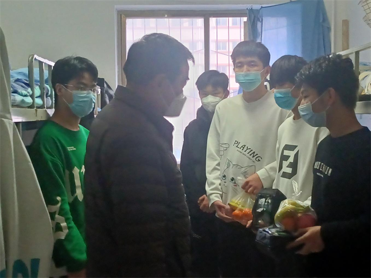 河北艺术职业学院党委书记赵宗更走进宿舍送物资和同学们交流谈心
