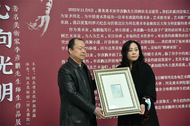 河北画院院长张之军代表画院向李彦鹏夫人赠送纪念品