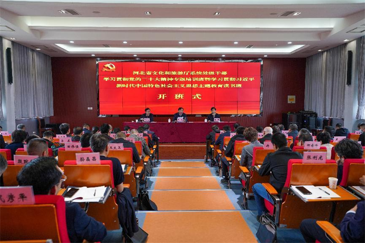 4月17日,河北省文化和旅游厅系统处级干部学习贯彻党的二十大精神专题培训班暨学习贯彻习近平新时代中国特色社会主义思想主题教育读书班在省委党校(河北行政学院)正式开班。省委宣传部副部长、省文化和旅游厅党组书记、厅长张才出席开班式并作动员讲话,省委党校(河北行政学院)副校长张月军出席开班式并致辞。