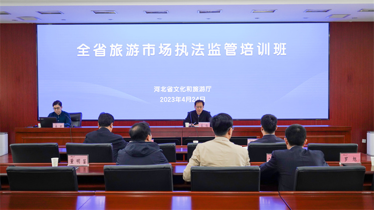 4月24日下午,省文化和旅游厅举办了全省旅游市场执法监管培训班,邀请北京市文化市场综合执法总队乔宇队长和国内旅游市场专家李志轩进行授课。培训班由厅二级巡视员张仡主持。厅市场管理处、综合执法监督局全体同志;各市文化和旅游部门市场管理、综合执法分管局领导,市场管理处(科)、文化市场综合行政执法局全体人员,雄安新区宣传网信局、综合执法局全体人员;各县(市、区)文化和旅游部门分管局领导,市场管理科(股)、文化市场综合行政执法局全体人员,共计1800余人参加。