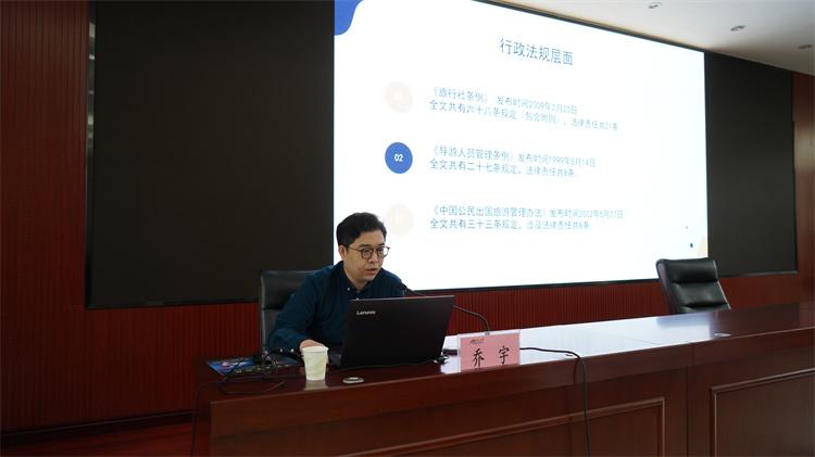 乔宇队长作了题为《旅游执法实务及前沿问题探究》辅导讲座。从法律法规概述、行政检查实务、重点旅游执法问题、前沿问题探究等方面对旅游执法工作进行了全面细致讲解。