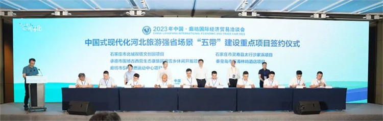 为持续叫响“这么近,那么美,周末到河北”文旅品牌,2023年6月16日至17日,河北省文化和旅游厅在中国·廊坊国际经济贸易洽谈会期间组织举办中国式现代化河北旅游强省场景“五带”建设重点项目招商推介活动。