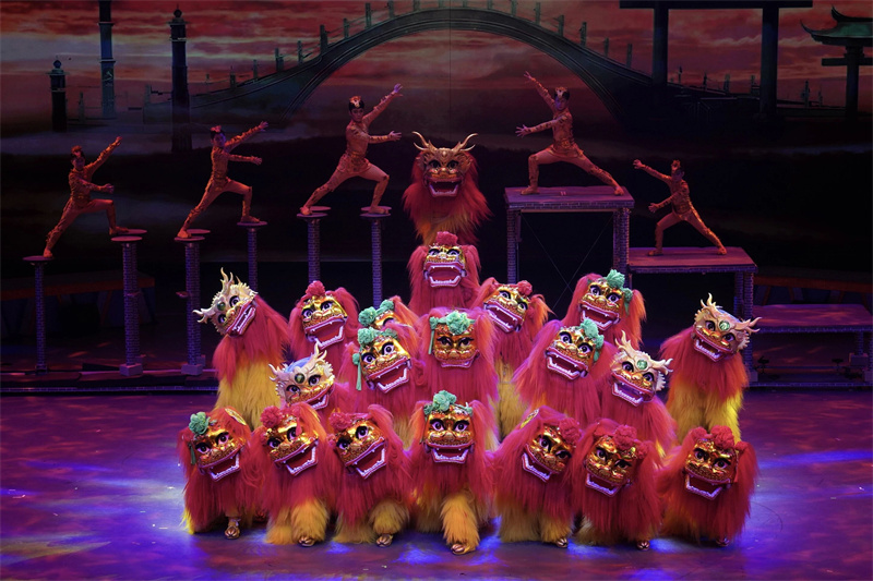 河北省杂技团演艺有限公司、沧州杂技团《祥狮跃九州》节目。张文进摄