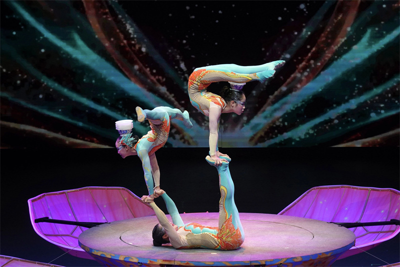 四川省遂宁市杂技团《焕舞华蓉——顶碗》节目。张文进摄