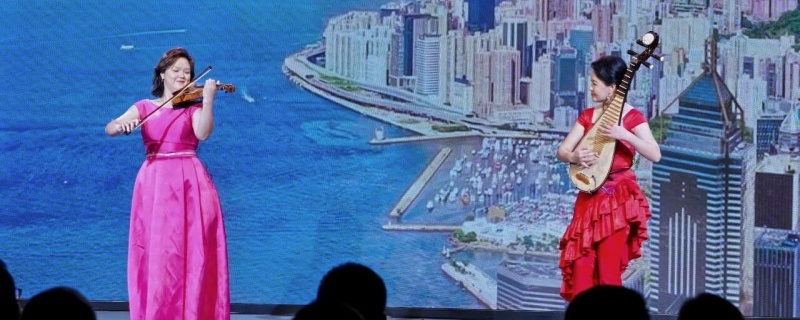 文艺表演环节更显冀港融合特色:全国武术冠军李勇泽的太极表演刚柔并济,展现三亿人习练的东方智慧;河北艺术职业学院的舞蹈《风筝飞》以灵动舞姿诠释国家级非遗的民俗韵味;沧州吴桥杂技《巧顶花坛》再现世界三大杂技赛场的金奖风采。最令人动容的是冀港乐器联奏——河北琵琶演奏家张健与香港小提琴家蔡芷颖跨界合作,让燕赵丝竹与西洋弦乐奏响“山海和鸣”。中国戏剧梅花奖得主郝士超、孙娜演绎的河北梆子《瓦桥关》《宝莲灯》选段,更让“北方戏窝子”的慷慨唱腔响彻香江。
