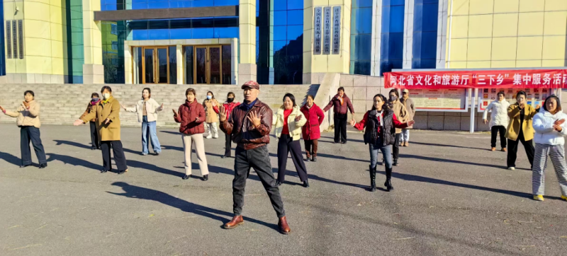 河北省群众艺术馆抽调业务骨干,组建声乐、舞蹈2支文艺小分队,深入周台子村面向“繁星计划”志愿者及文艺爱好者开展文艺辅导培训。广场舞辅导中,老师以《全身总动员》为例,从基础动作、队形编排到节奏把控逐一讲解,帮助学员快速掌握规范动作。合唱辅导中,声乐老师围绕发声方法、气息控制等内容细致教学,带领学员学唱《我和我的祖国》,现场互动热烈,学习氛围浓厚。