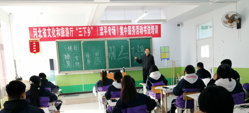 河北省文化和旅游研究院发挥专业优势,选派优秀书法家深入滦平职教中心及县图书馆,面向中学生开展书法讲座与示范指导,系统讲述中国书法简史,传授篆书、楷书技法,指导学生创作书法作品,推动中华优秀传统文化在青少年群体生根发芽。