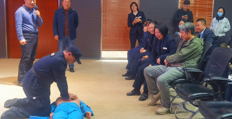 一线保安人员在专家指导下进行心肺复苏实操演练